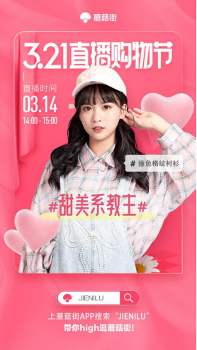 截至目前,蘑菇街平台入駐的主播已超過29000名,日均可觀看直播內容時長超過3800小時,在即將到來的蘑菇街“321直播購物節”,更多主播將加入其中,為粉絲挑選高性價比的大牌商品。